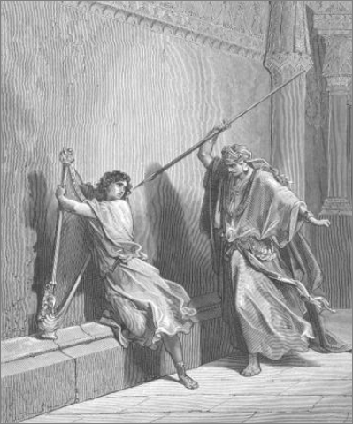 하나님의 부리신 악령이 사울에게 이를 때에 다윗이 수금을 들고 손으로 탄즉 사울이 상쾌하여 낫고 악령이 그에게서 떠나니라